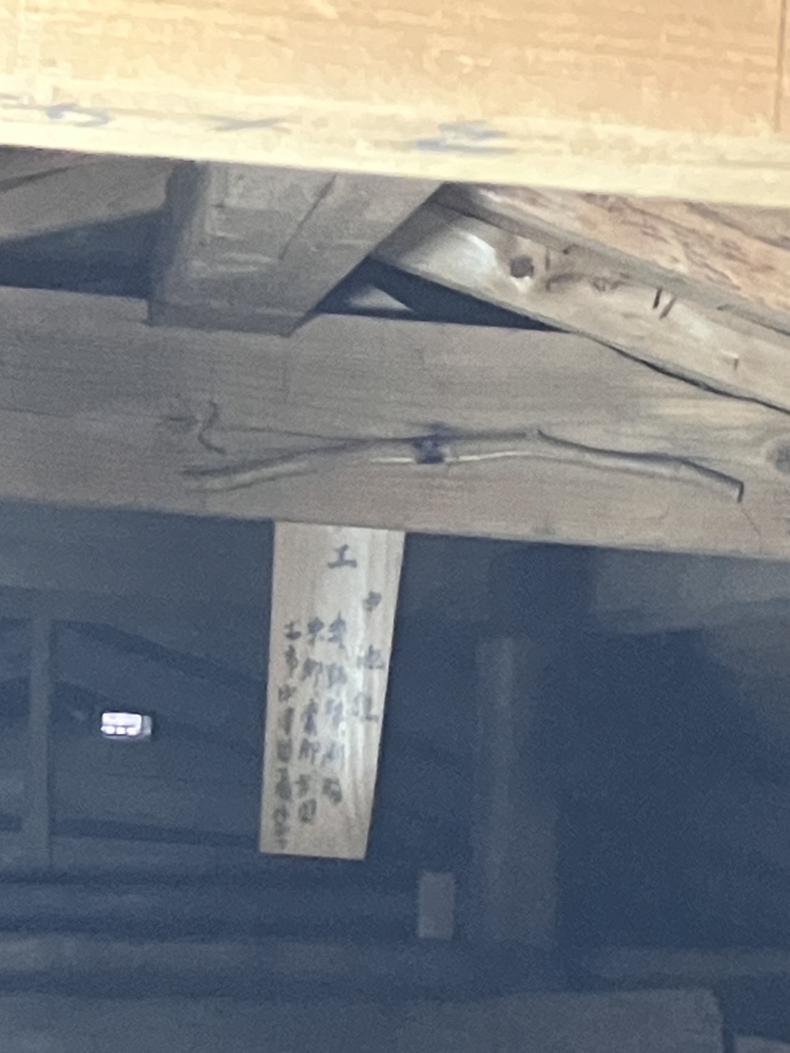 ちょっと見づらいですが屋根裏には当時の棟札もありました。