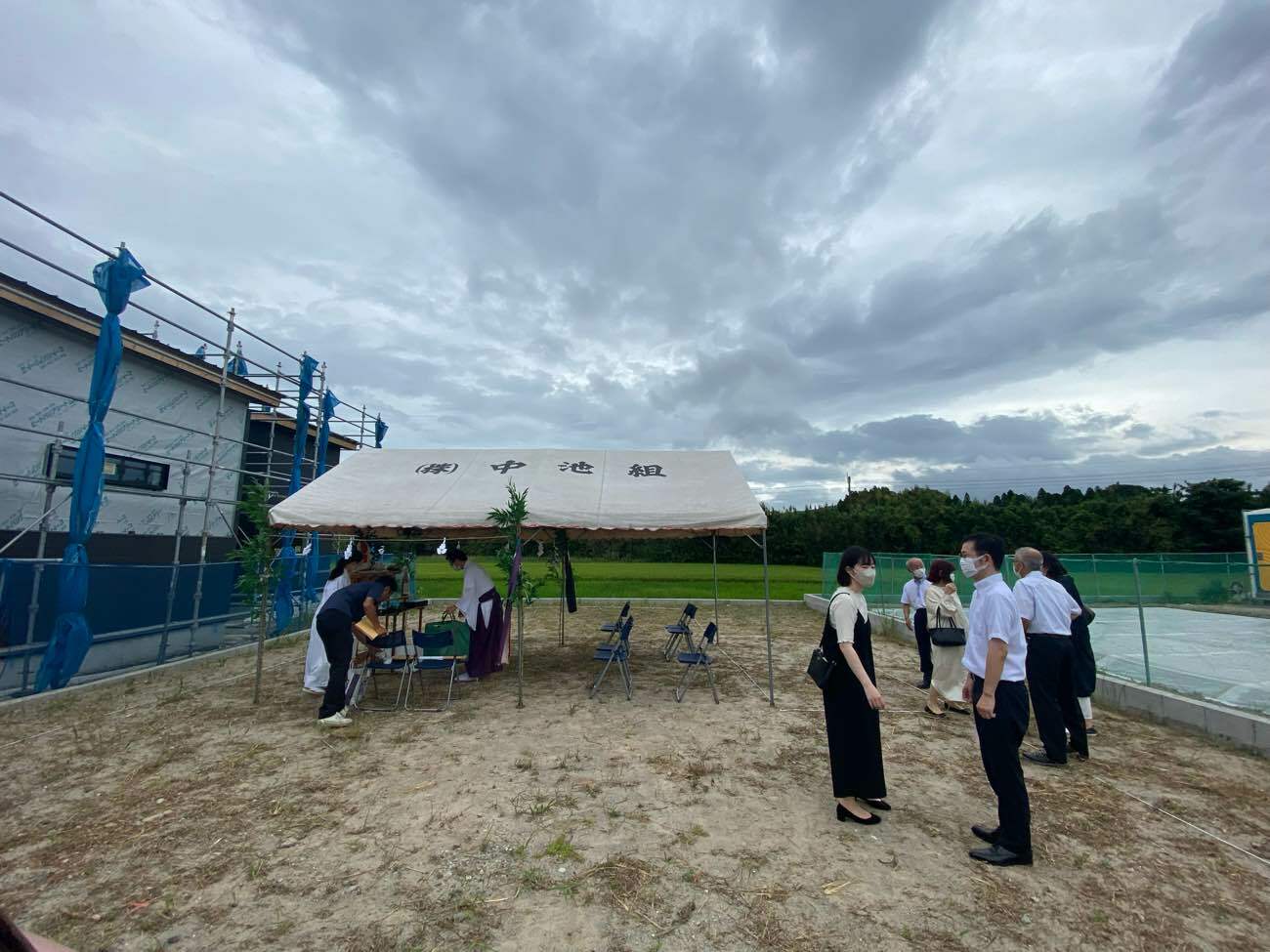 台風接近中ではございますがH様邸の地鎮祭が執り行われました。