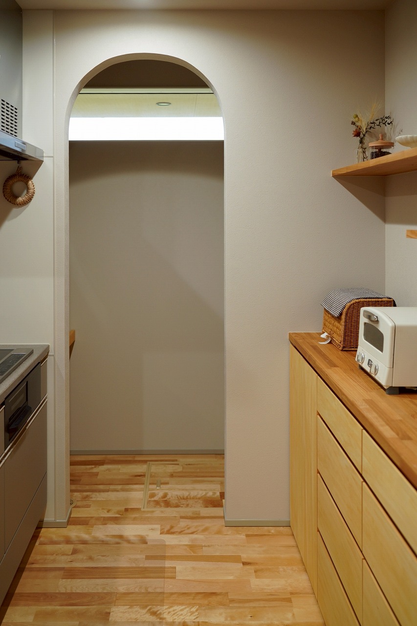 キッチン横のR開口も素敵です